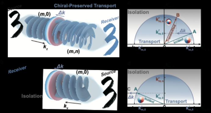 近日,威廉希尔足球网声学研究所李勇、王旭教授团队在手性保护的极端非对称声信息传输方面取得进展。研究团队提出了一种手性保护与拓扑荷守恒的极端非对称声信息传输方法,并在强噪声环境下展现出鲁棒的传输能力。该方法利用径向模态自由度,克服了传统角向调制方式导致的手性破坏与通道串扰问题,相关成果以“Chirality-Protected Extreme Asymmetric Acoustic Information Transport with Noise Immunity”为题,发表于《自然·通讯》(Nature Communications)。
