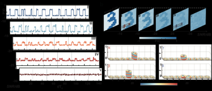在信息传输验证中,研究团队将图像像素化并编码到不同手性的涡旋波中。实验结果表明,该方法能有效避免不同拓扑荷通道间的串扰,确保信息完整传输。当信号处于强噪声干扰下时,系统在信噪比低至-25 dB的条件下仍可成功重构原始图像(图2),充分展示了优异的抗干扰性能。