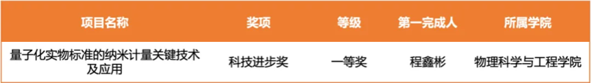 王占山教授团队的程鑫彬教授主持完成的"量子化实物标准的纳米计量关键技术及应用"项目获科技进步奖一等奖。该项目成功研制了我国首套纳米级角度国家一级标准物质,为纳米制造提供了精准测量基础。